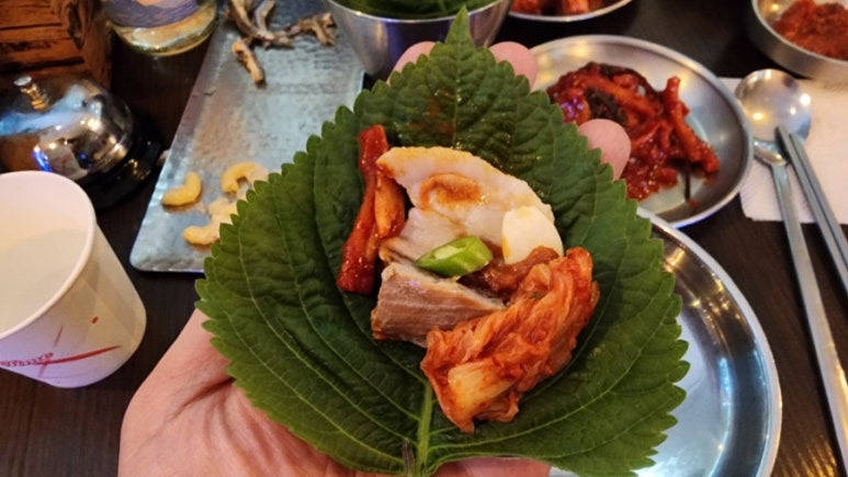이제 본격적으로 먹기 위해 쌈을 싸본다.