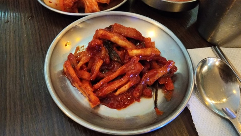 무 무침은 맵지 않고 달달한 느낌이다.