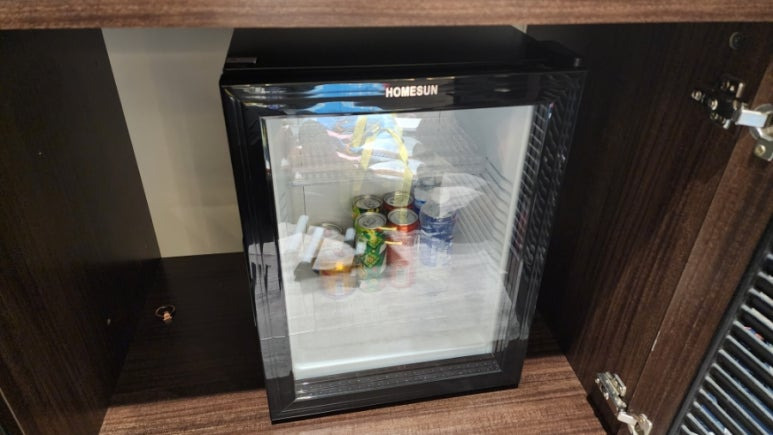 물통 아래쪽에 서랍장 문을 열면 냉장고가 있다.