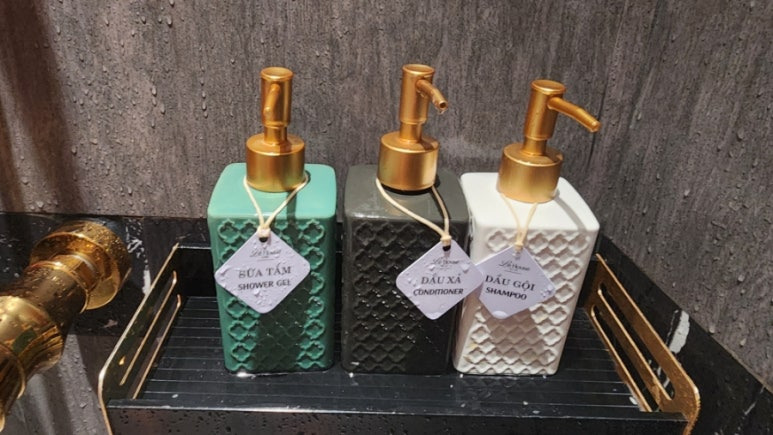 럭셔리한 느낌을 더욱 올려주는 물 비누류(?)인 샴푸, 린스, 바디워시는 도자기로 된 용기에 담겨있다.