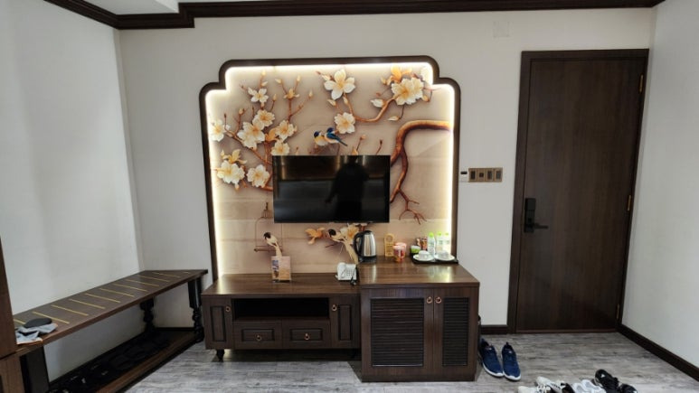 들어온 입구 쪽을 보면 TV와 TV 장(?)이 보인다.