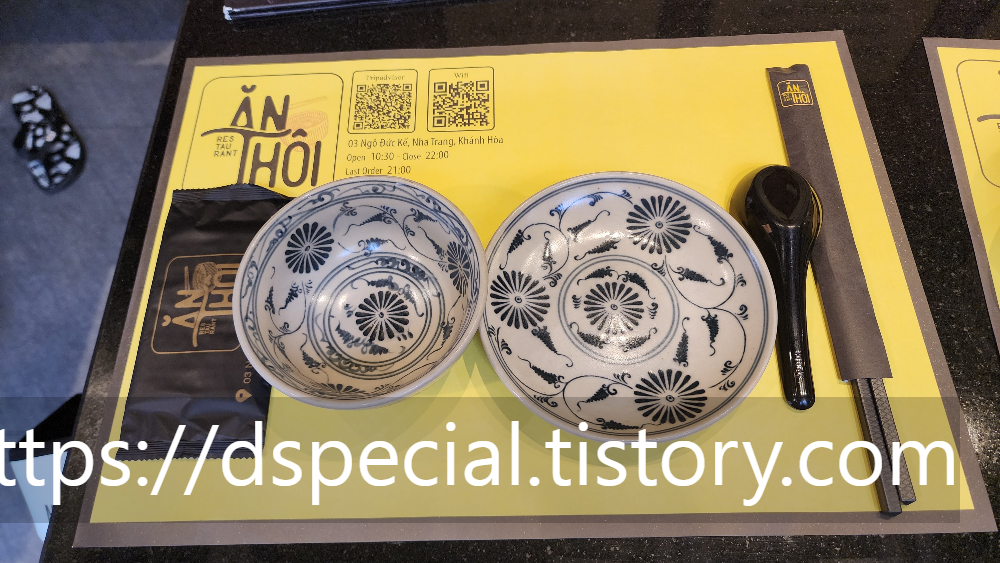 그릇은 뭔가 베트남스러운 사기그릇이 있다.