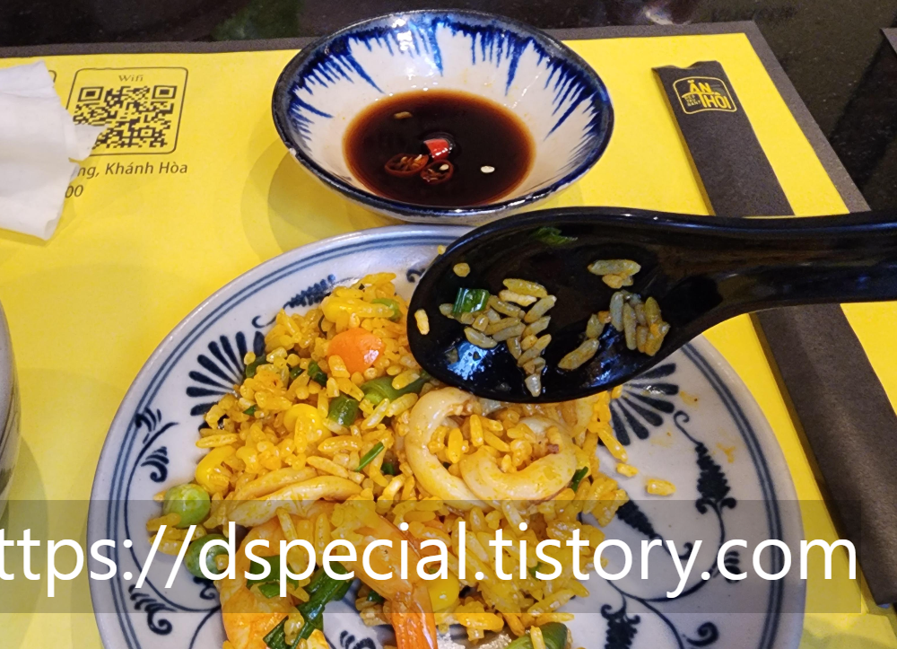그냥 먹으면 고소하고 바삭한 볶음밥인데, 함께 나온 간장을 살짝 뿌리면 조금 더 깊은 맛이 나는 거 같다.