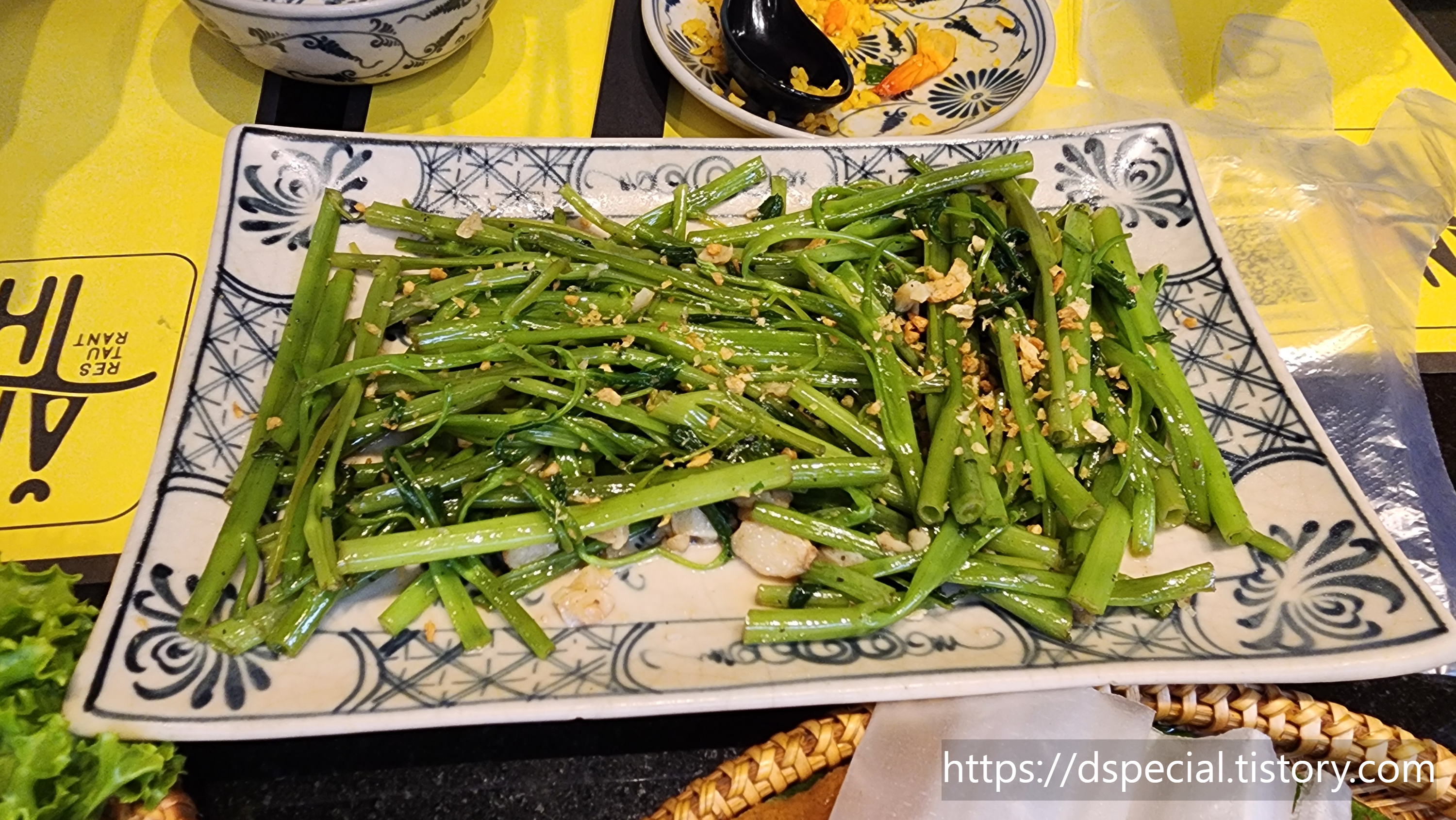아상하게 씹히는 모닝글로리와 은근한 마늘의 향(사실 마늘 향은 거의 안 난다. 개코가 아닌 이상 맡기 힘들다.)
