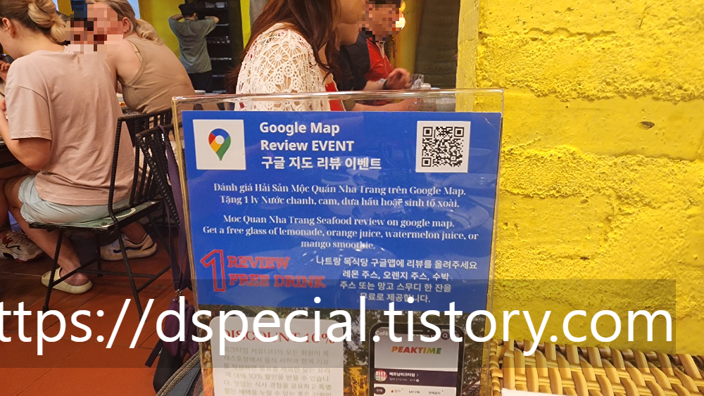 구글 지도에서 별 5개를 주면 종업원이 체크하고 음료수를 하나 준다.