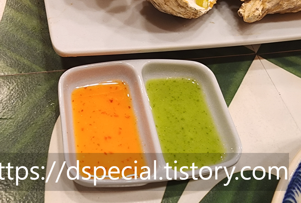 새콤달콤, 약간 매콤한 소스 2개가 있는데...