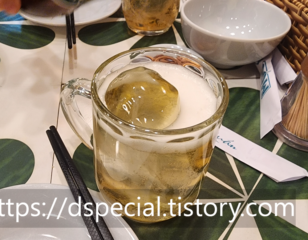 얼음을 넣어 더 시원하게 마시라는 건가 보다.