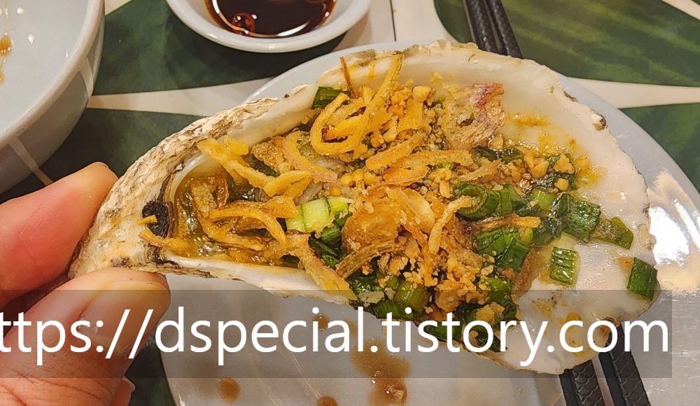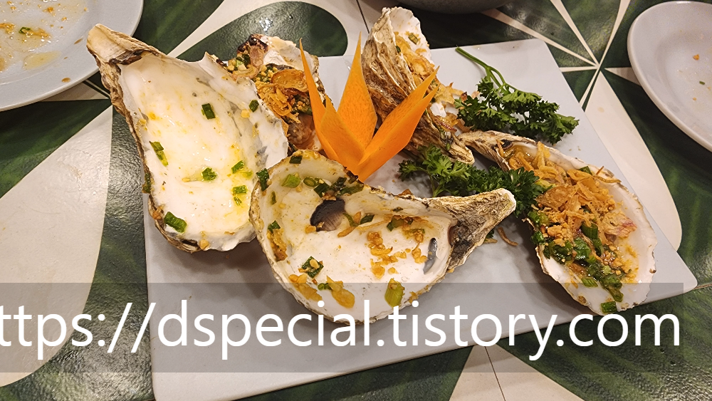 신선한 굴은 그냥 구워도 맛있는데, 파랑 마늘이 올라간 굴은 얼마나 더 맛있을지...