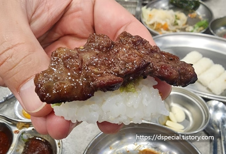 밥 위에 와사비를 조금 넣고, 그 위에 잘 익은 갈빗살을 올리면?