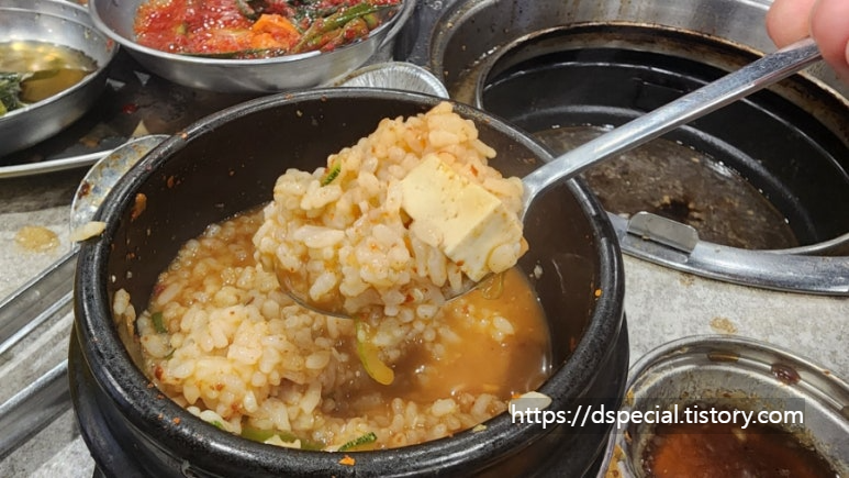 밥 따로, 찌개 따로 먹어도 되지만 이렇게 먹는 게 더 맛있게 느껴진다.