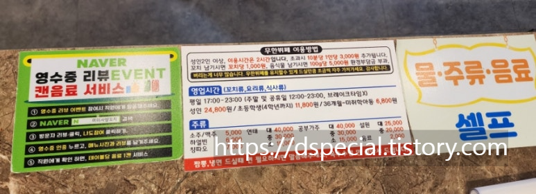 식탁 한쪽에 붙어있는 이용안내를 읽어보는데...
