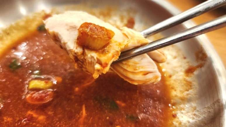 닭고기가 살만 쉽게 분리되기 때문에 젓가락으로 슥슥~ 살을 떼어내서 먹기도 편하다.