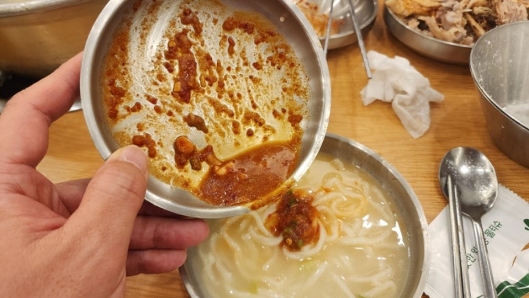 치킨 스톡의 힘인지, 조미료의 힘인지, 닭을 오래 고아서 나온 국물의 힘인지 감칠맛이 돌면서 간도 적절하다.