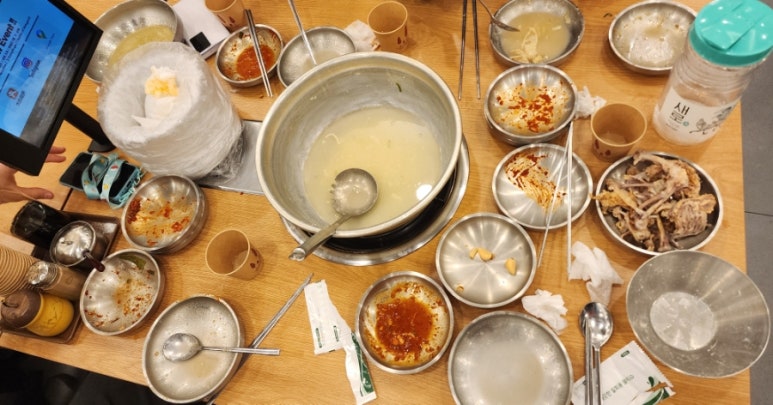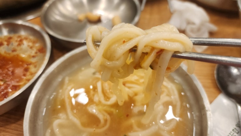 칼국수가 들어가면서 국물이 걸쭉해지면서 국물 맛이 깊어지기 시작해서 그런지, 끝물에 먹는 국물 맛은 처음 먹었던 닭칼국수보다 더 맛났다.