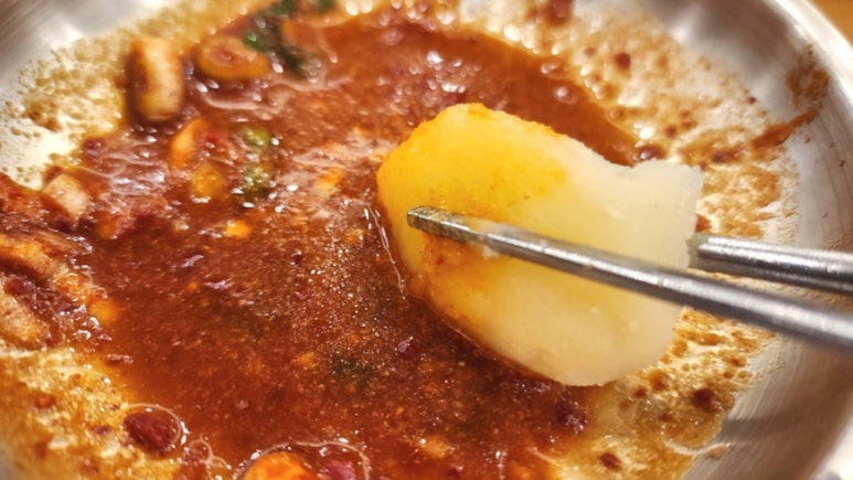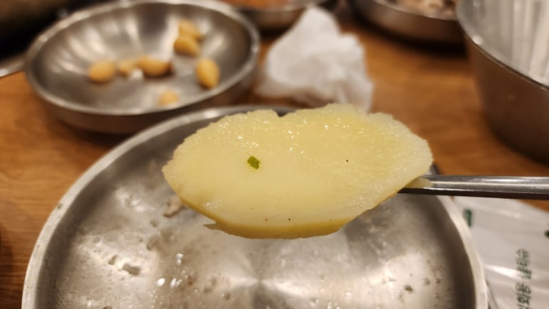 감자가 닭 육수를 머금어 간이 잘 배어있다.