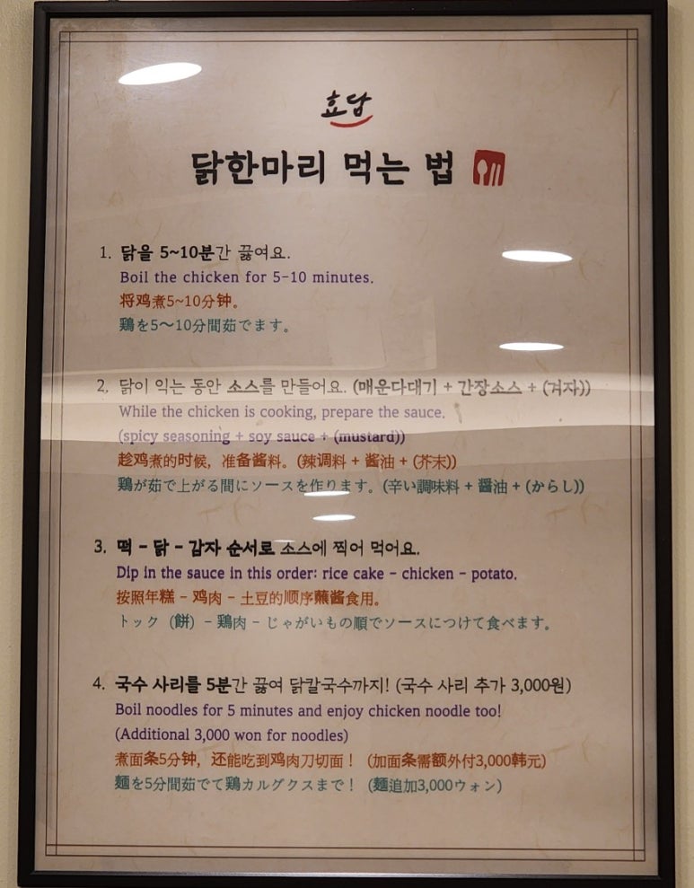 닭한마리 먹는 법이라고 적힌 액자가 보여서 좀 읽어봤다.