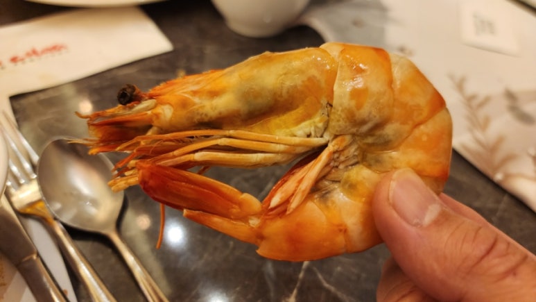 보통 양식하는 흰 다리 새우보다 훨씬 더 큰 크기다.