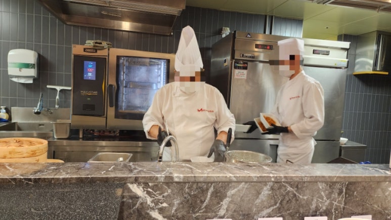 엘리베이터에서 나와서 자동문을 지나면 바로 식당이 보인다.