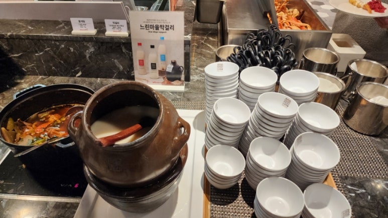 느린마을 막걸리를 무제한으로 마실 수 있다.