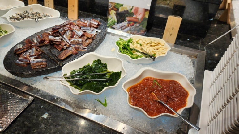내가 마음대로 집어갈 수 있는 게 아니라 몇 종류를 접시에 담아준다.