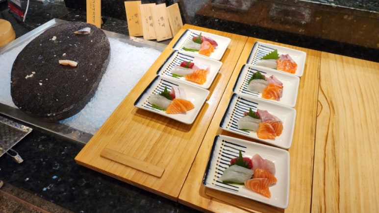 하지만 '프리미엄 해산물 뷔페인 마키노차야 블랙 31이라 더 좋은 재료를 썼겠지?'라고 믿으면서 음식들을 집는다.