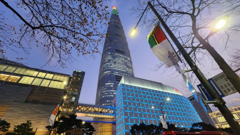 현재 우리나라에서 가장 높은 건물인 롯데월드타워 동쪽 편으로 들어가야 한다.