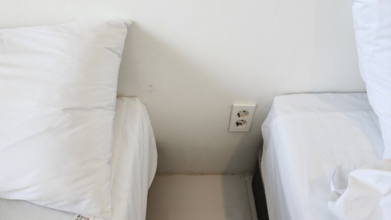 그런데 침대와 침대 사이에 콘센트가 그대로 드러나 있는 건 좀...