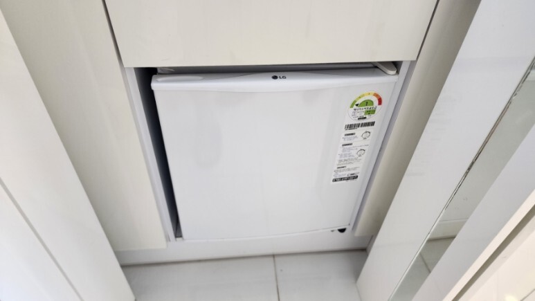 아래쪽 작은 냉장고에 음료 등을 넣어두어 시원하게 마실 수 있다.