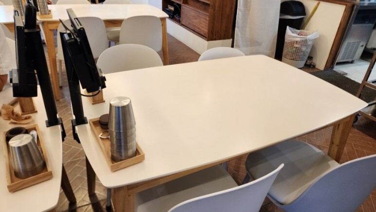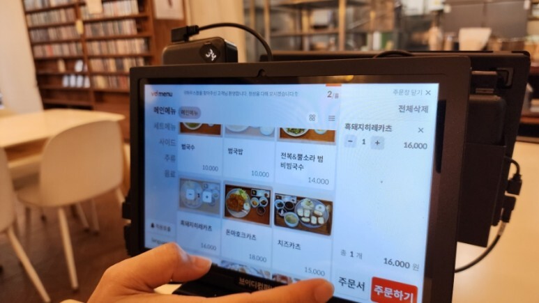 빈 식탁으로 가서 앉은 후 터치스크린을 이용해 주문을 하면 된다.