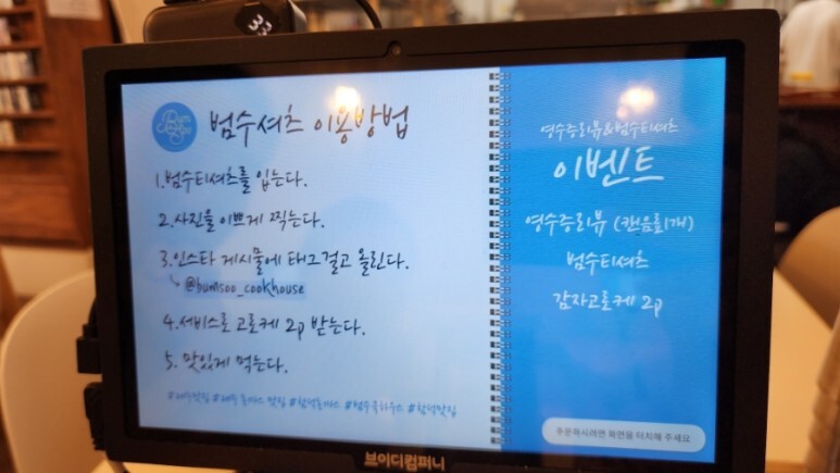 뭐라 안내 문구가 쓰여 있는데, 배가 고프니 우선 먹고 나서 생각하기로 한다.