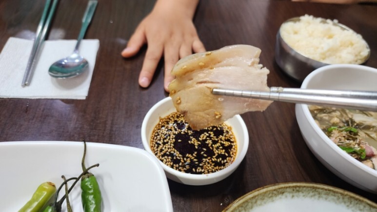 주인아저씨 말이 제주에서는 잔칫날, 제삿날에 고기는 무조건 간장에 찍어 먹는단다.