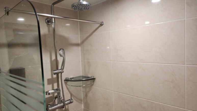 수압은 나쁘지 않은 편으로, 샤워할 때 문제없다.