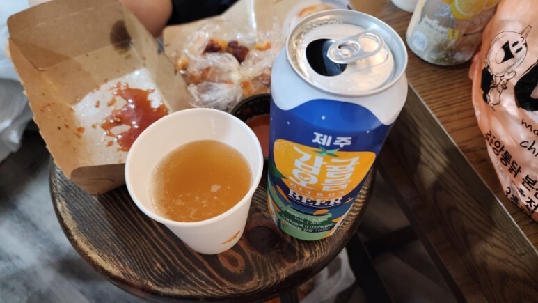 맥주 맛도 나쁘지 않으나 감귤오름과 애플리어는 과일의 향이 강해 가볍게 술 한잔하기에 아주 좋다.