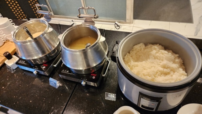 맨 앞엔 밥과 국, 스프가 있다.