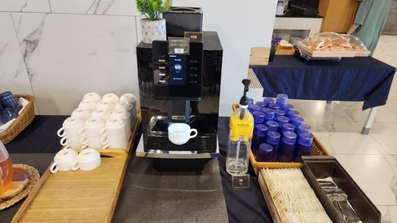 그리고 진짜 마지막으로 음료(우유, 주스류)가 있고, 그 옆에 커피 머신이 있다.