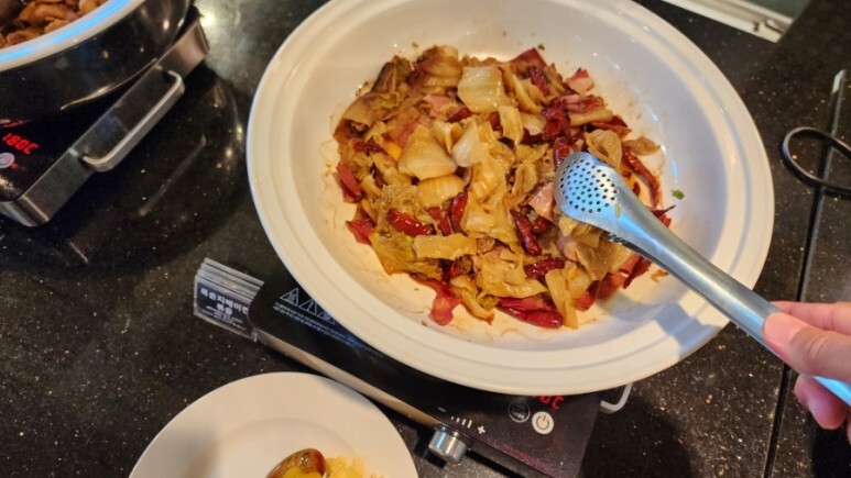 묵은지와 베이컨을 볶은 요리다.