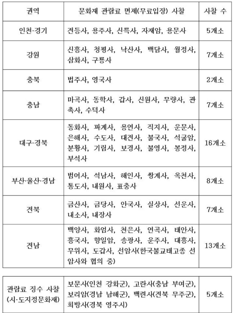 위와 같이 전국의 많은 사찰들이 입장료 징수를 폐지했다.