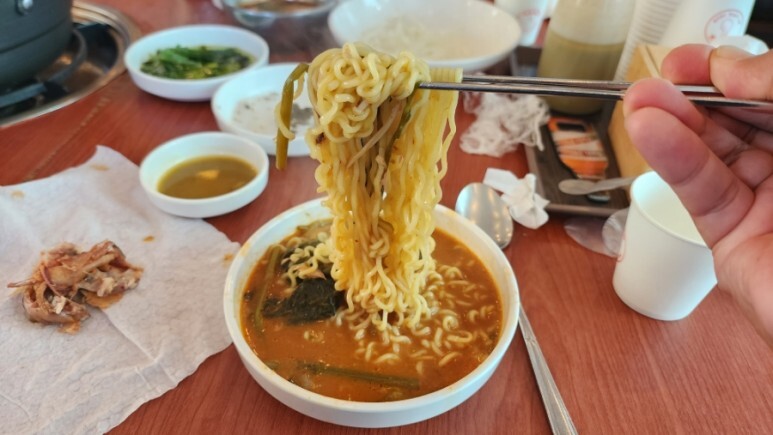 이 집의 장점은 육수, 수제비, 라면사리가 무한이라는 점!!