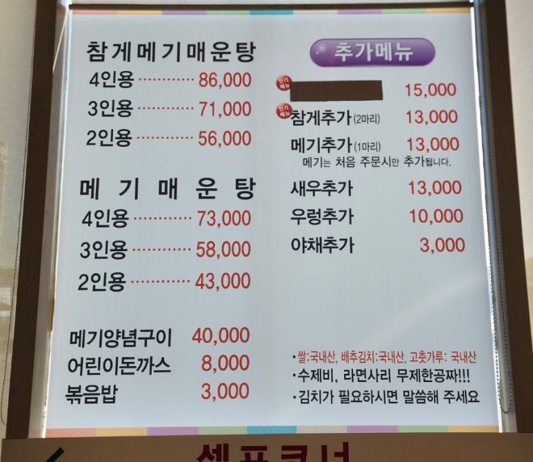 그땐 메기매운탕 4인분이 4만 원대였던 거로 기억된다. (기억이 가물가물 ㅡ,.ㅡ)
