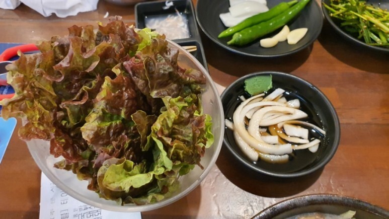 한쌈 싸서 먹으면 상추와 양파의 아삭거림과 보쌈의 부드러움+쫄깃함이 만나 잔치가 벌어진다.
