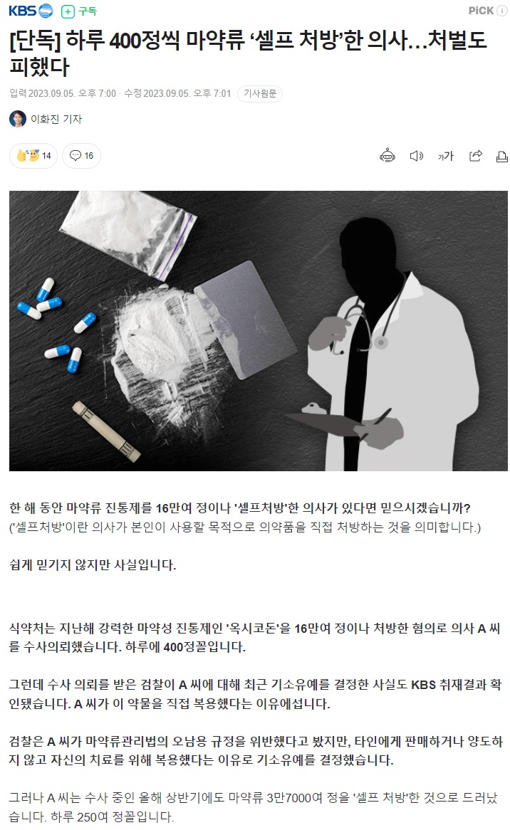 의사는 셀프로 마약 먹어도 되는거야?