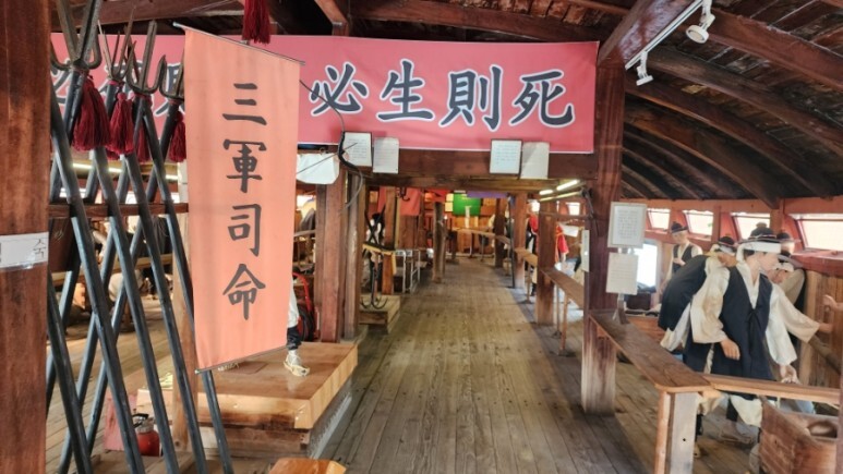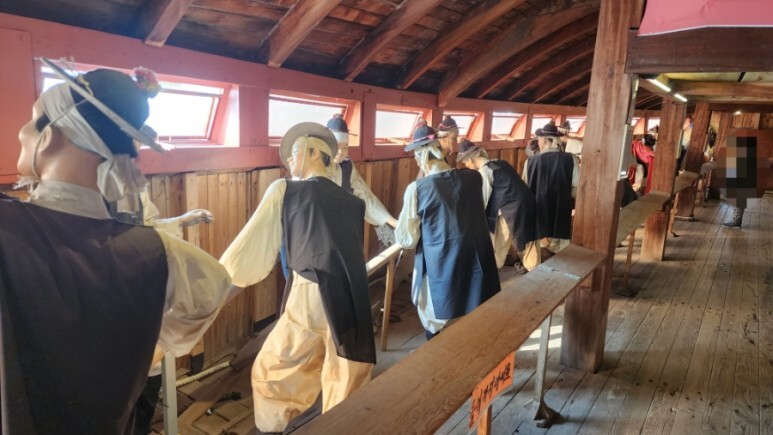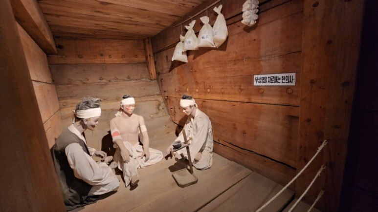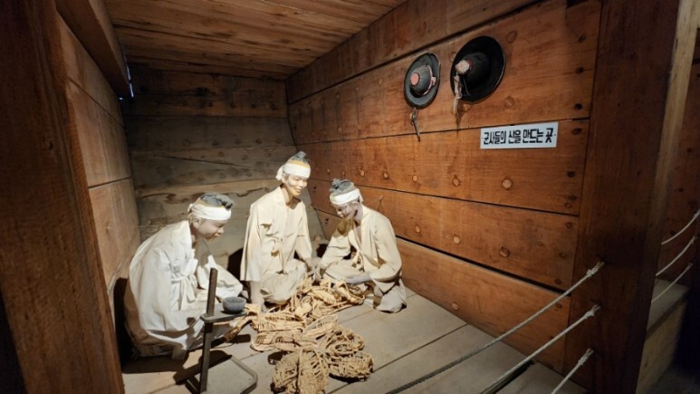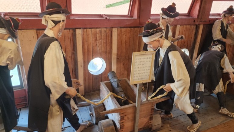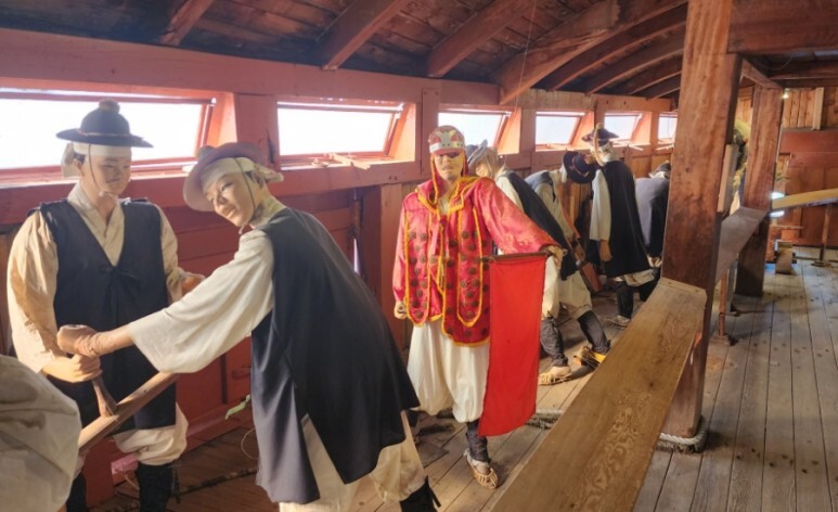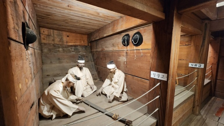 왼편과 오른편 모두 병사들의 마네킹이 있으며 포를 쏘려고 준비하는 모습과 노를 젓는 모습으로 구성되어 있다.