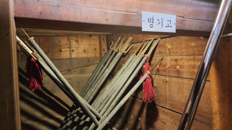 배 중간에는 당시 사용하던 무기들이 전시되어 있다.