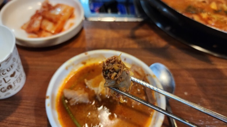 전골은 맛은 있는데, 내장 냄새가 좀 나는 편이었다.