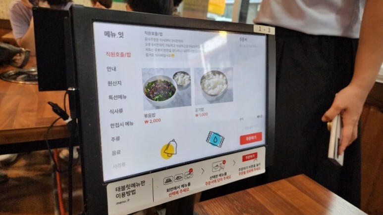 이곳에서도 식탁마다 전자 주문 시스템이 활성화되어 있다.