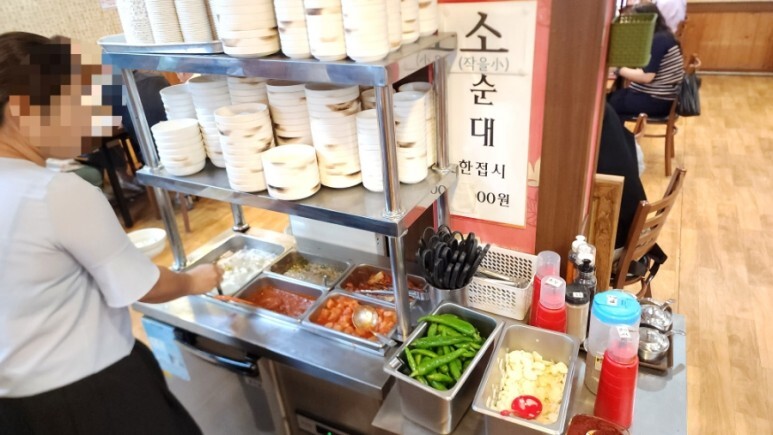식당 가운데엔 셀프로 추가 반찬을 가져올 수 있는 코너가 있다.