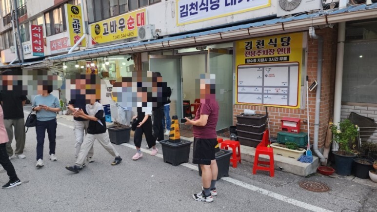 시장 먹거리 골목에 있어서 주차장이 주변에 없다는 것이다.