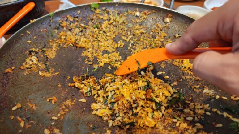 남겨놓은 전골 국물에 볶음밥을 살살 비벼서 먹으면...