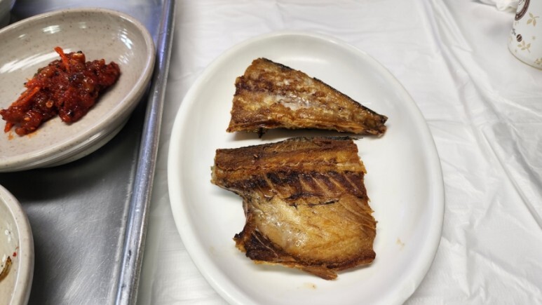 백반에는 고등어구이가 함께 나오는데, 간이 적절하고 바삭(?) 하게 구워졌다.