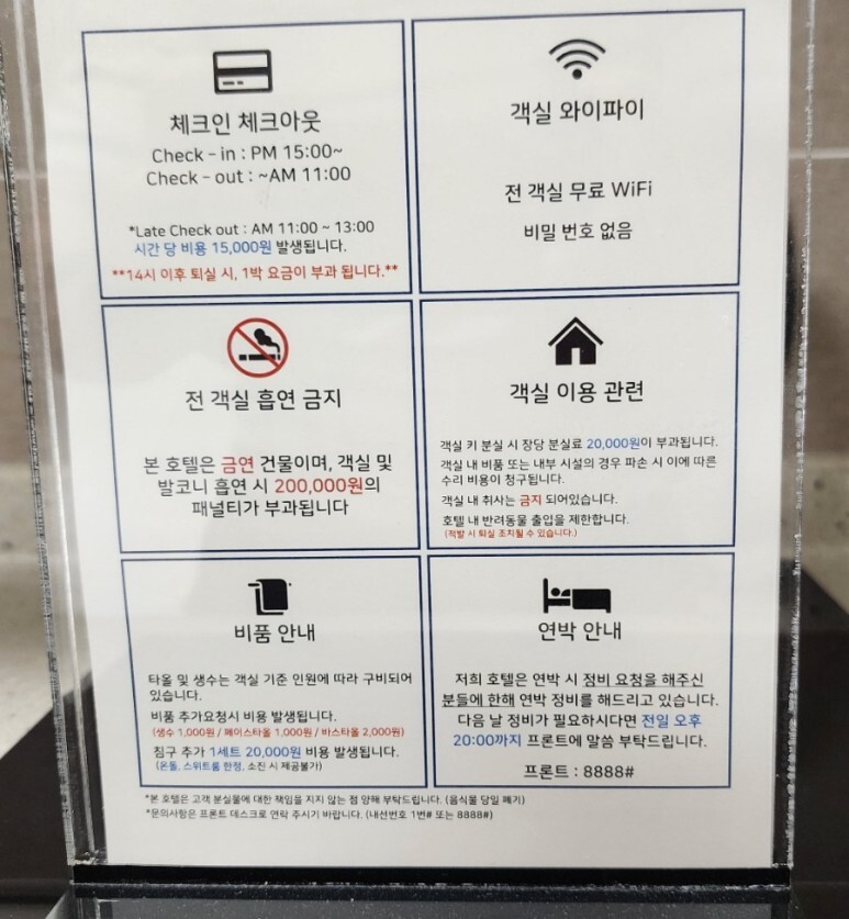 다른 건 모르겠고 체크인, 체크아웃 시간만 알아놓자.